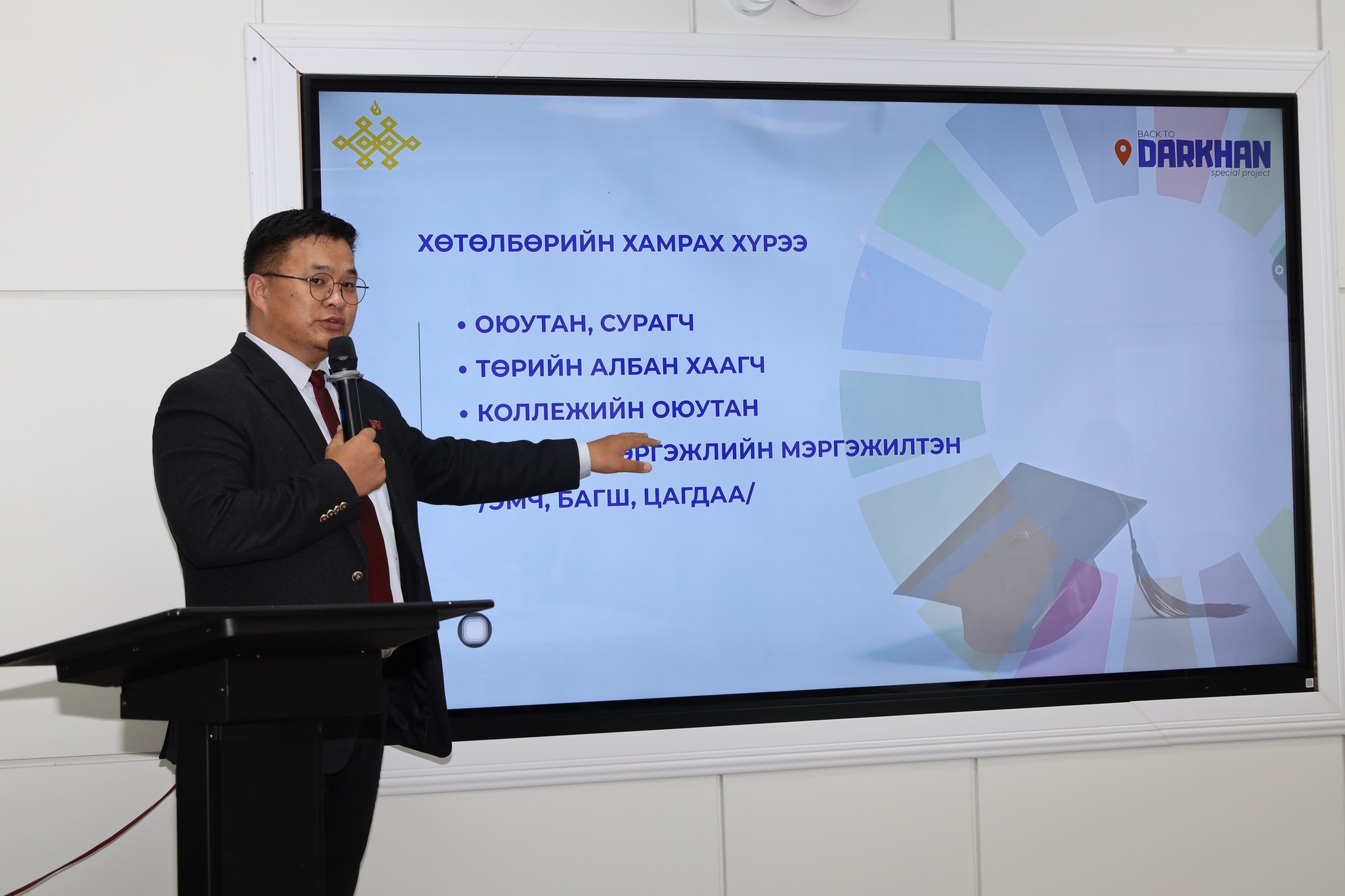 - Гадаадын их, дээд сургуульд суралцаж буй болон төгссөн залуусын эзэмшсэн мэдлэг, ур чадварыг Дархан-Уул аймагт нутагшуулах